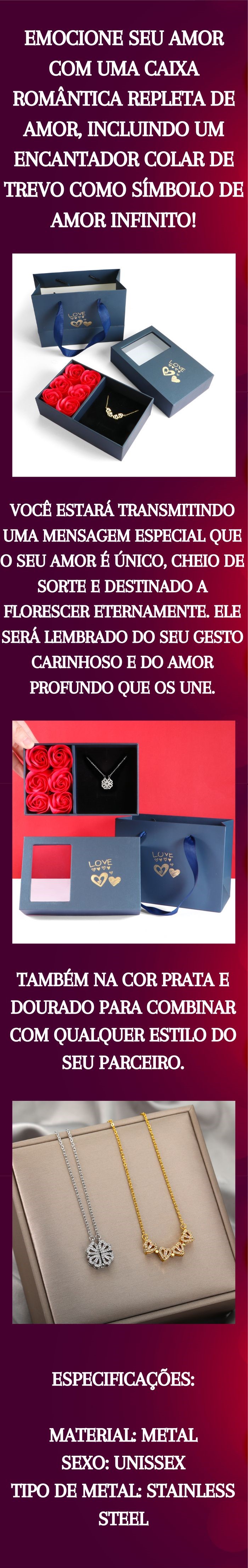 Colar Trevo do Amor Com Caixa Romântica